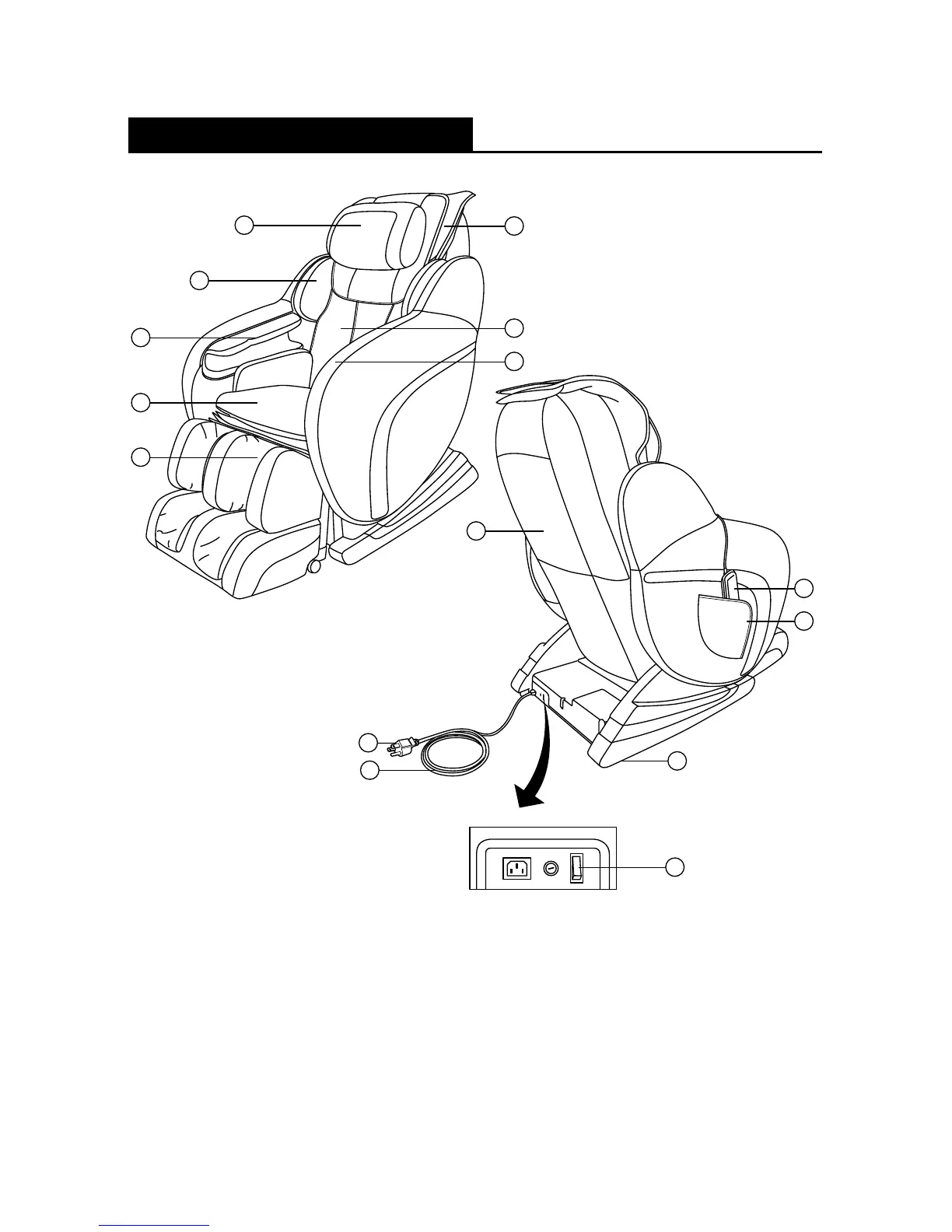 Brookstone OSIM uAstro - Names of Parts and Functions; Chair Component Identification