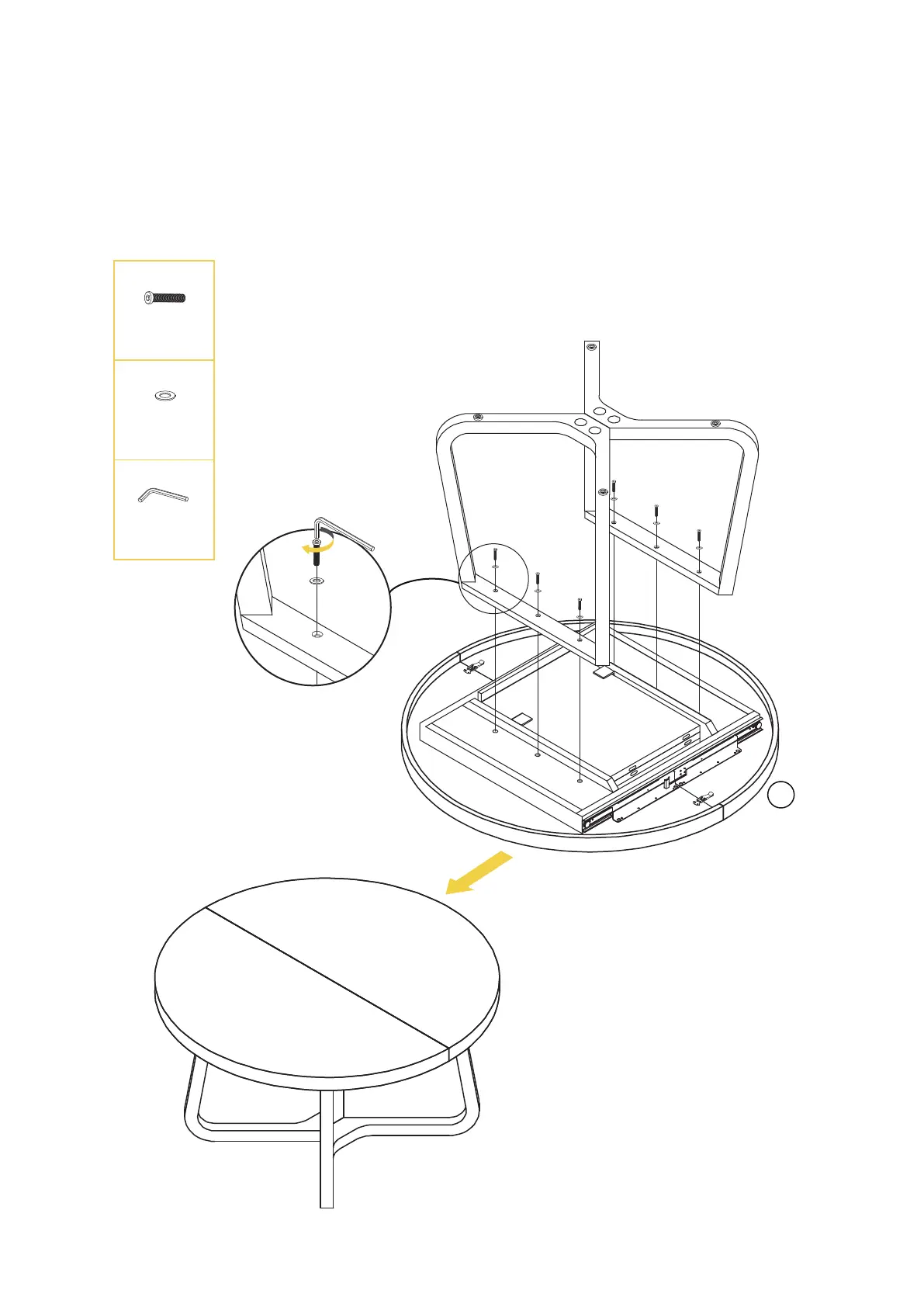 side of the table top (1) so that all of the screw holes