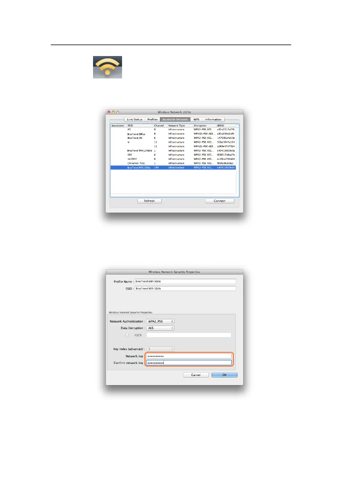 3.2.4 After you input the correct WiFi Network Key, your MAC will be connected