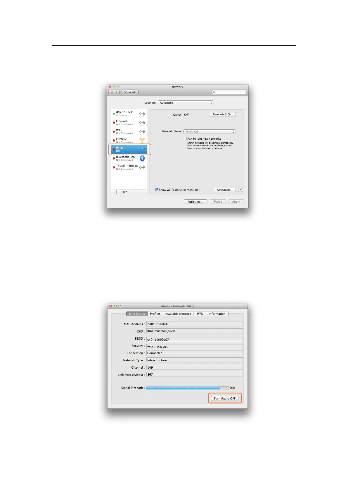 integrated in your MAC, you can click the “Turn Wi-Fi ON/OFF” to control