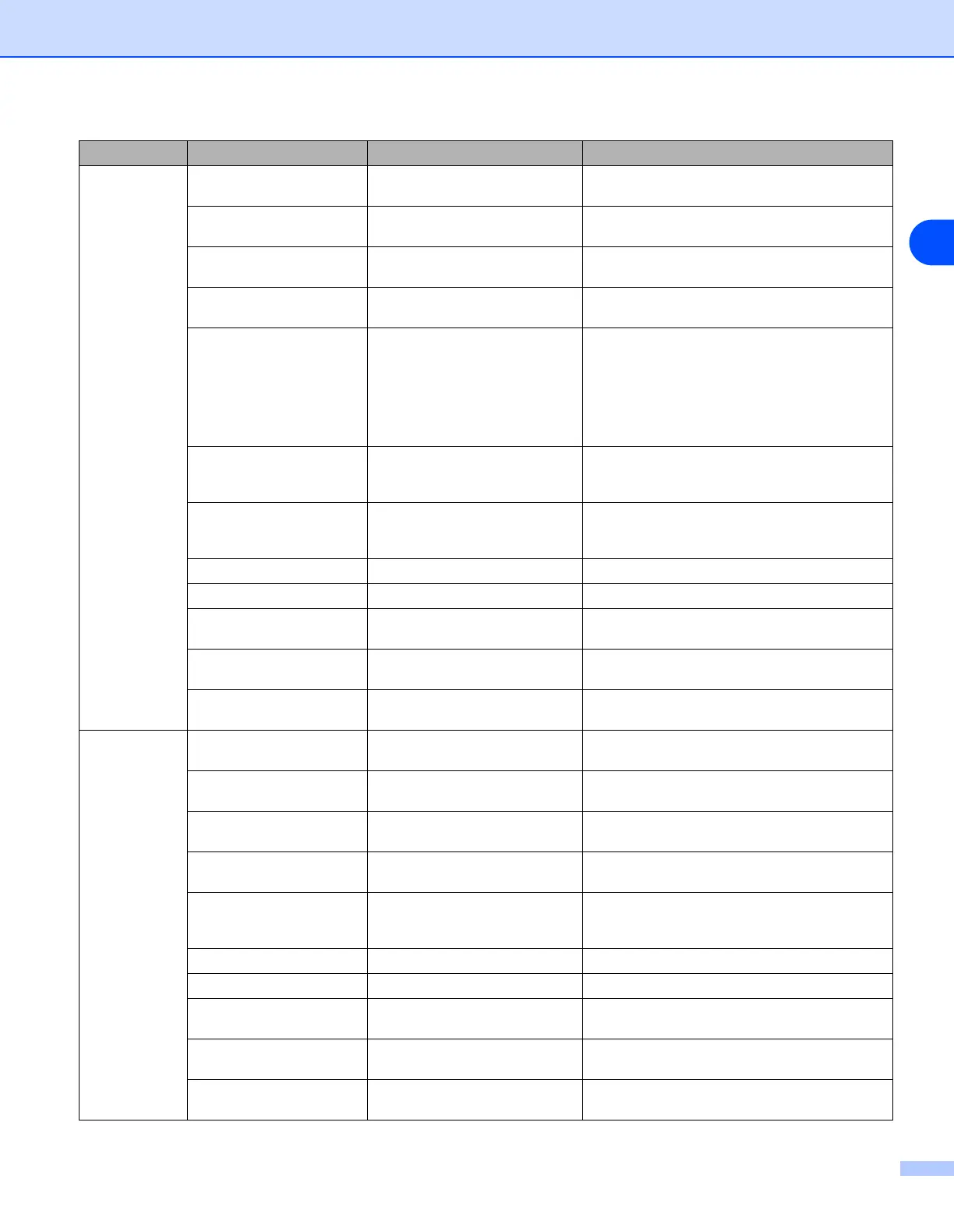 Remote Printer Console Menu Table