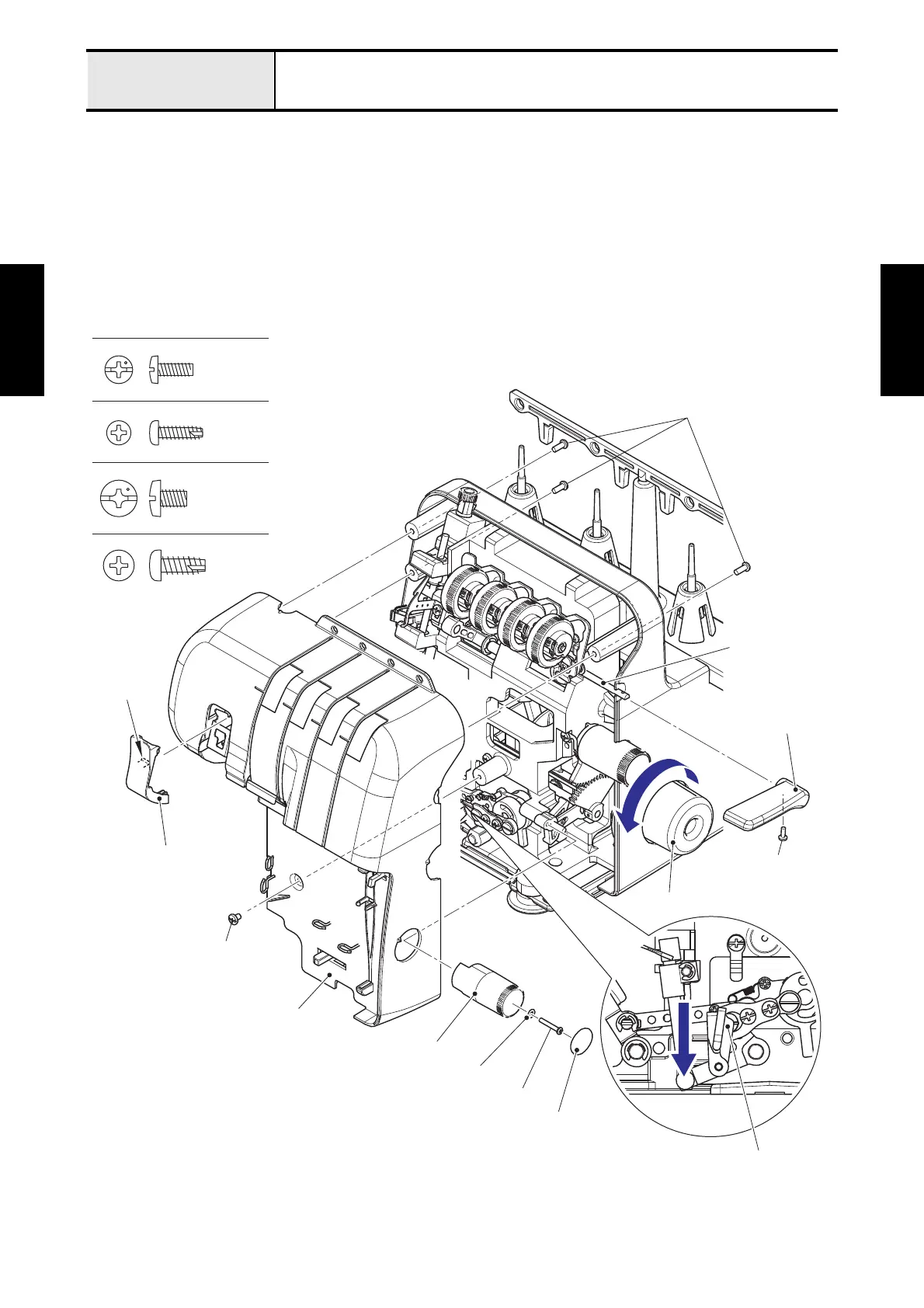 4. Turn the hand wheel by hand, and move the looper thread take-up A/B to the lowest point.