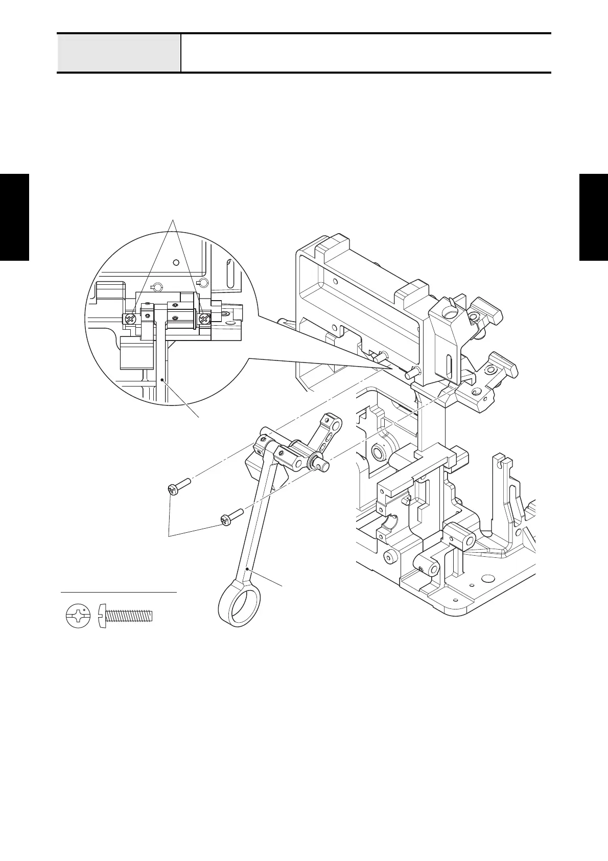 1. Remove the two screws (screw, bind M4x16) to remove the needle bar driving lever assy.