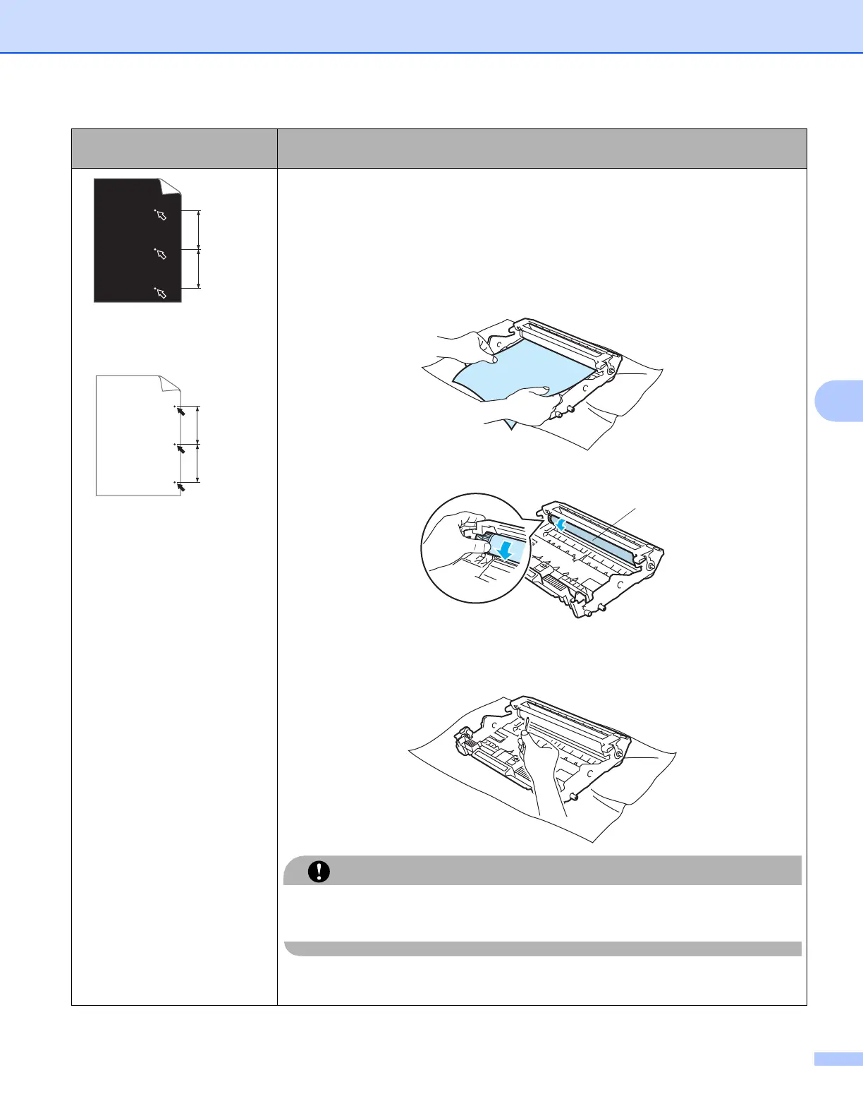 aux taches sur la page, essuyez la surface du tambour à l’aide d’un coton-