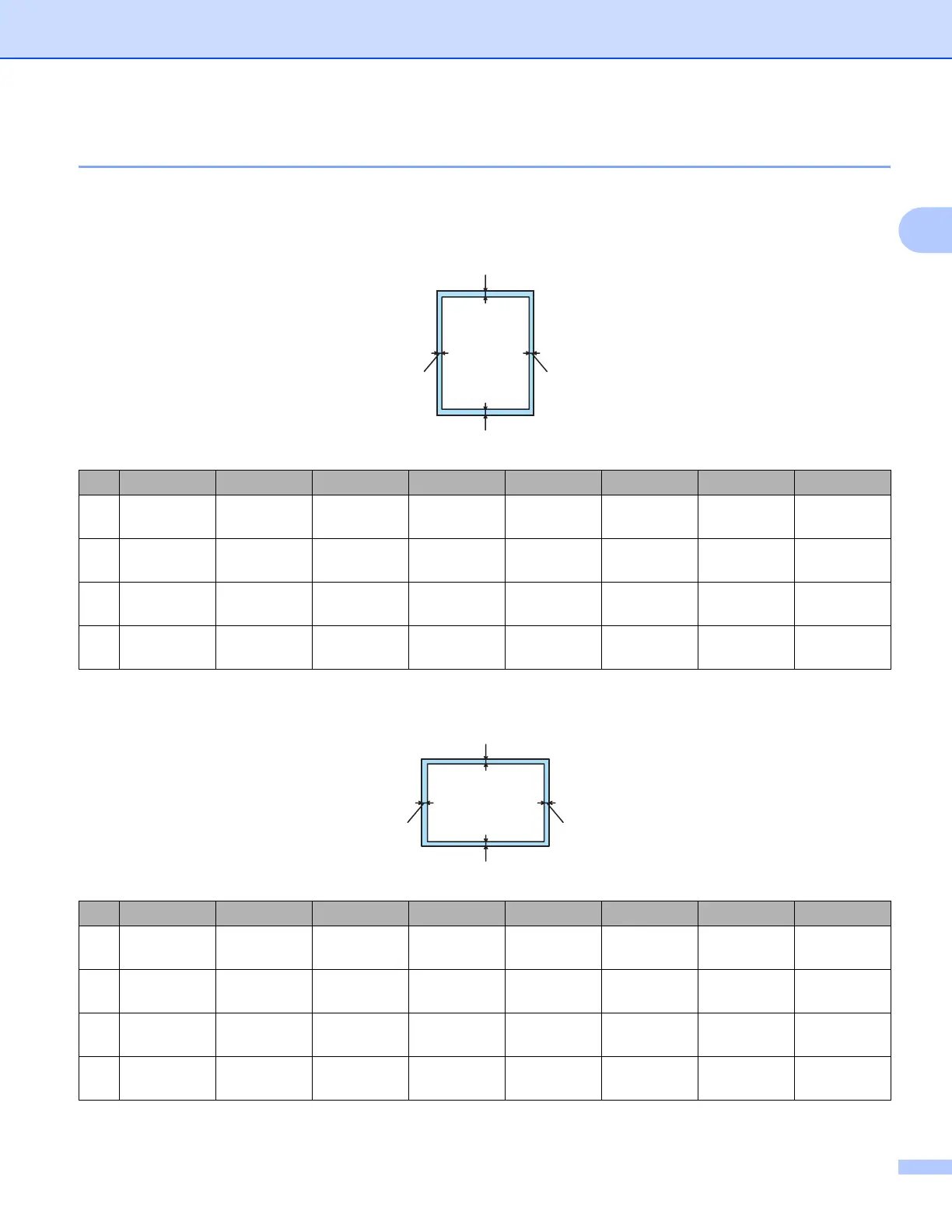 Le tableau ci-dessous indique la zone de papier non imprimable :