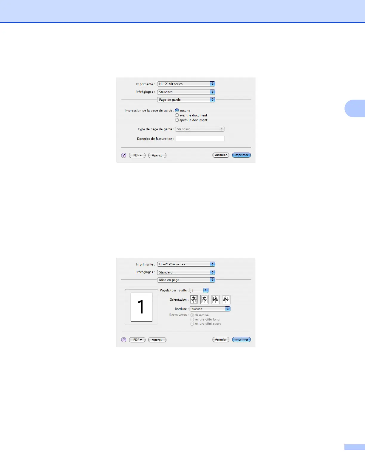 Sélectionnez le nombre de pages qui apparaîtra sur chaque face du papier.