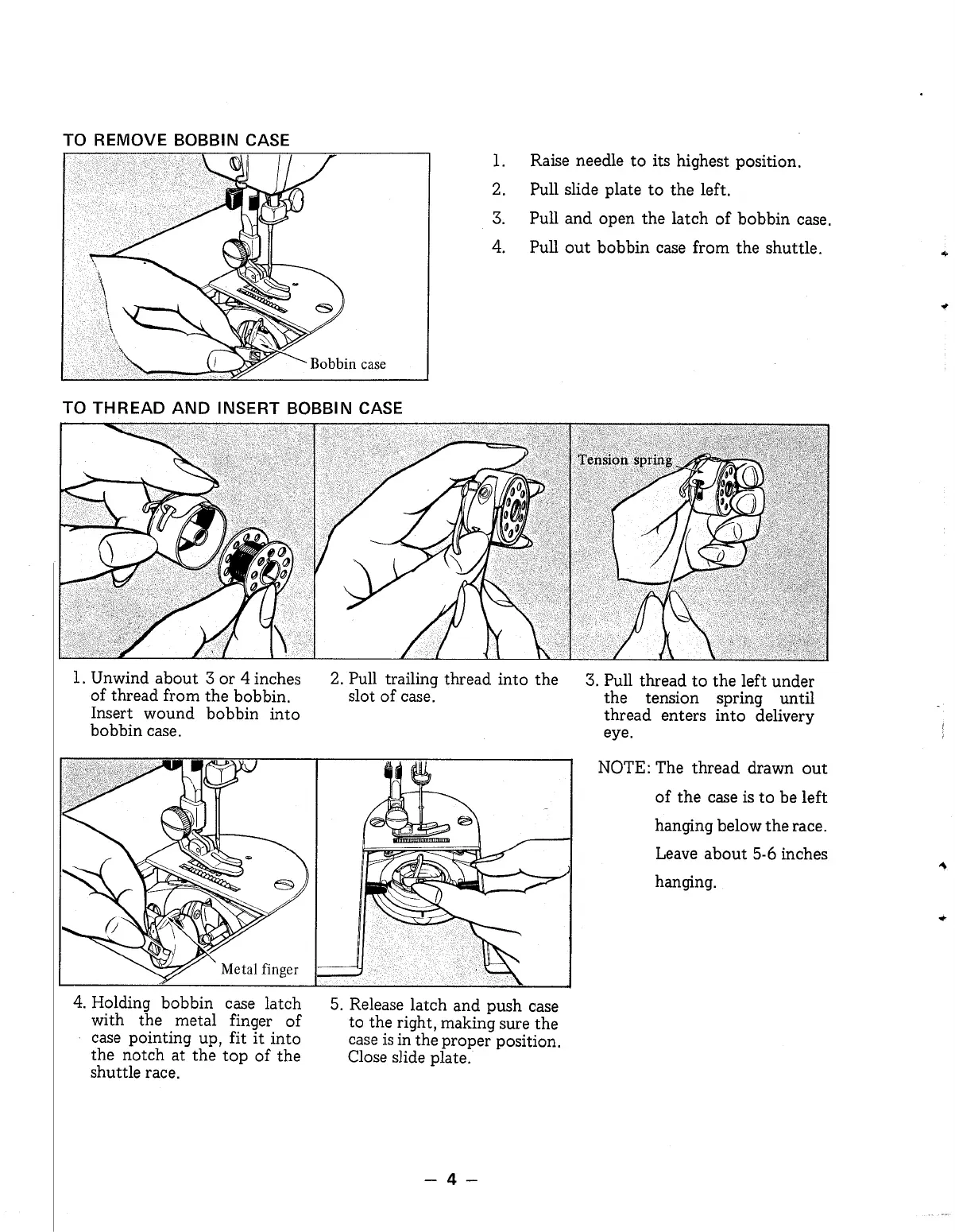 Brother 360 - Removing the Bobbin Case; Threading and Inserting Bobbin Case