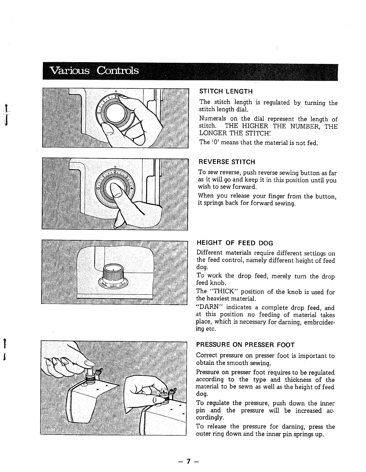 Brother 360 - Sewing Controls and Adjustments; Stitch Length Adjustment; Reverse Stitch Operation; Height of Feed Dog Adjustment