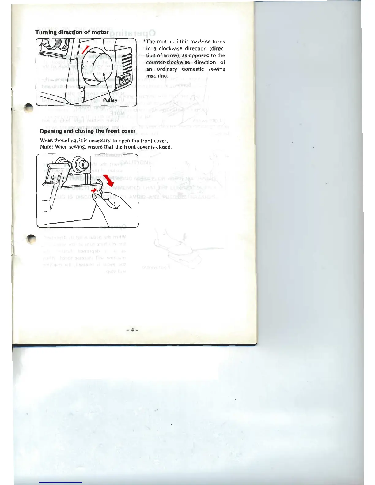 Brother 634D - Basic Operation and Setup; Motor and Front Cover Operation