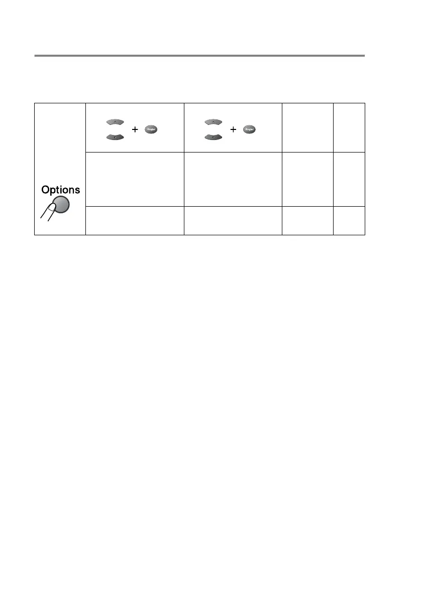 Sélections par menu Options Réglages