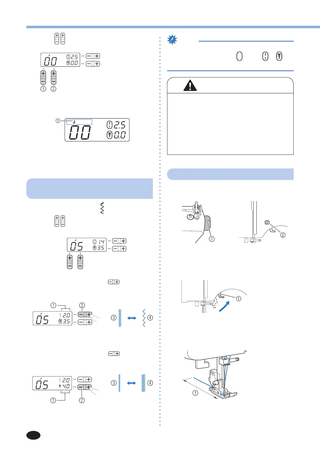 1 Stitch width 2 Stitch width adjustment key
