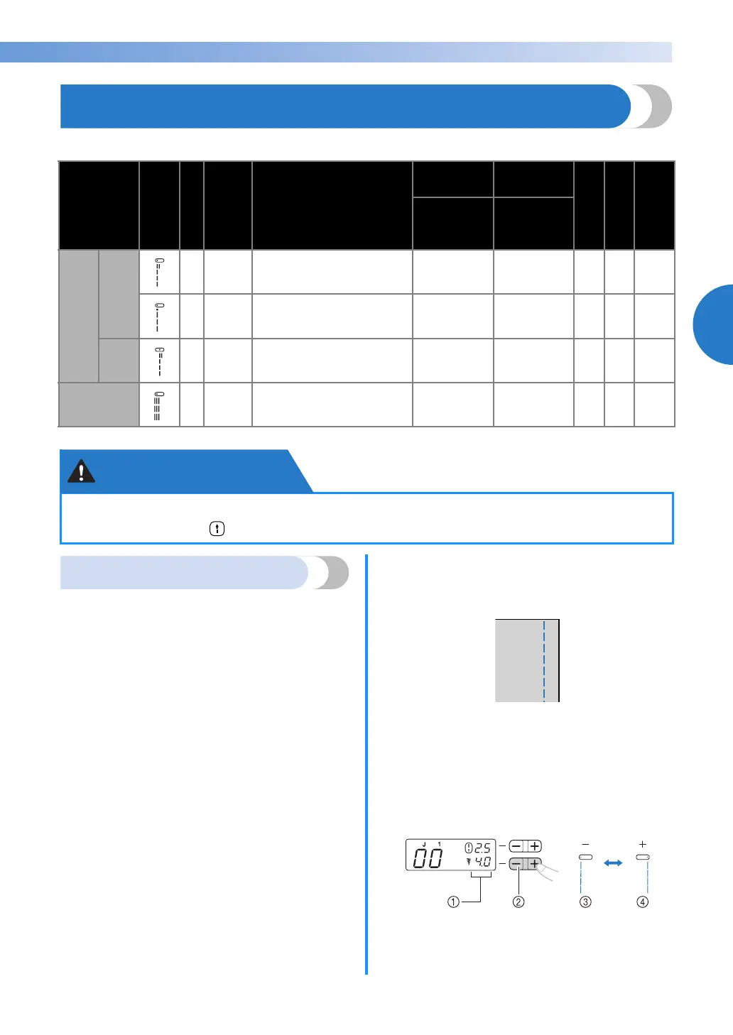 adjusted. Pressing the “+” side of the stitch width