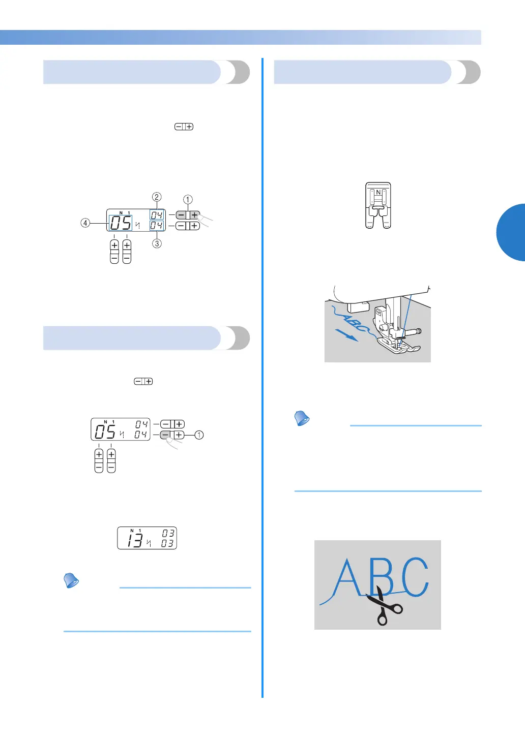 ● When sewing characters, the machine