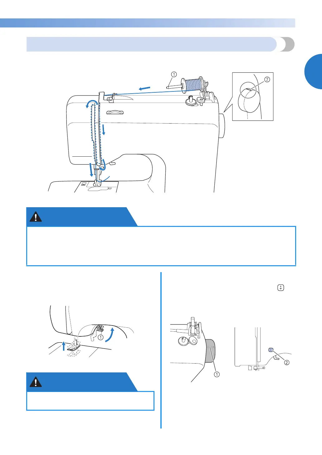 When threading the upper thread, carefully follow the instructions. If the upper threading is not correct,