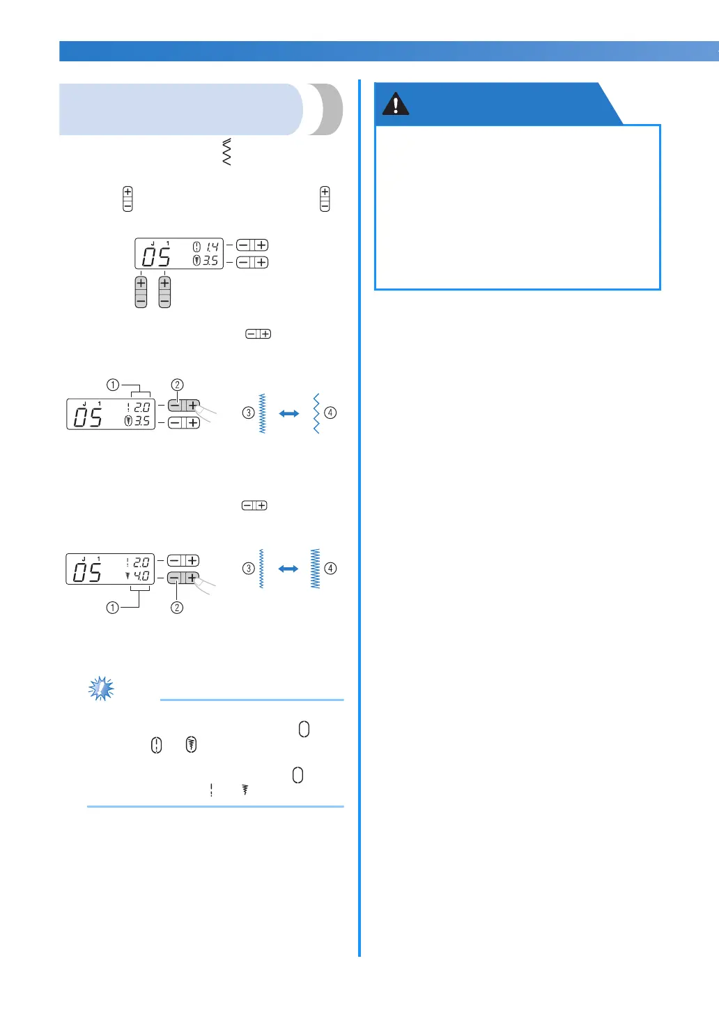 ● When the stitch length or stitch width is