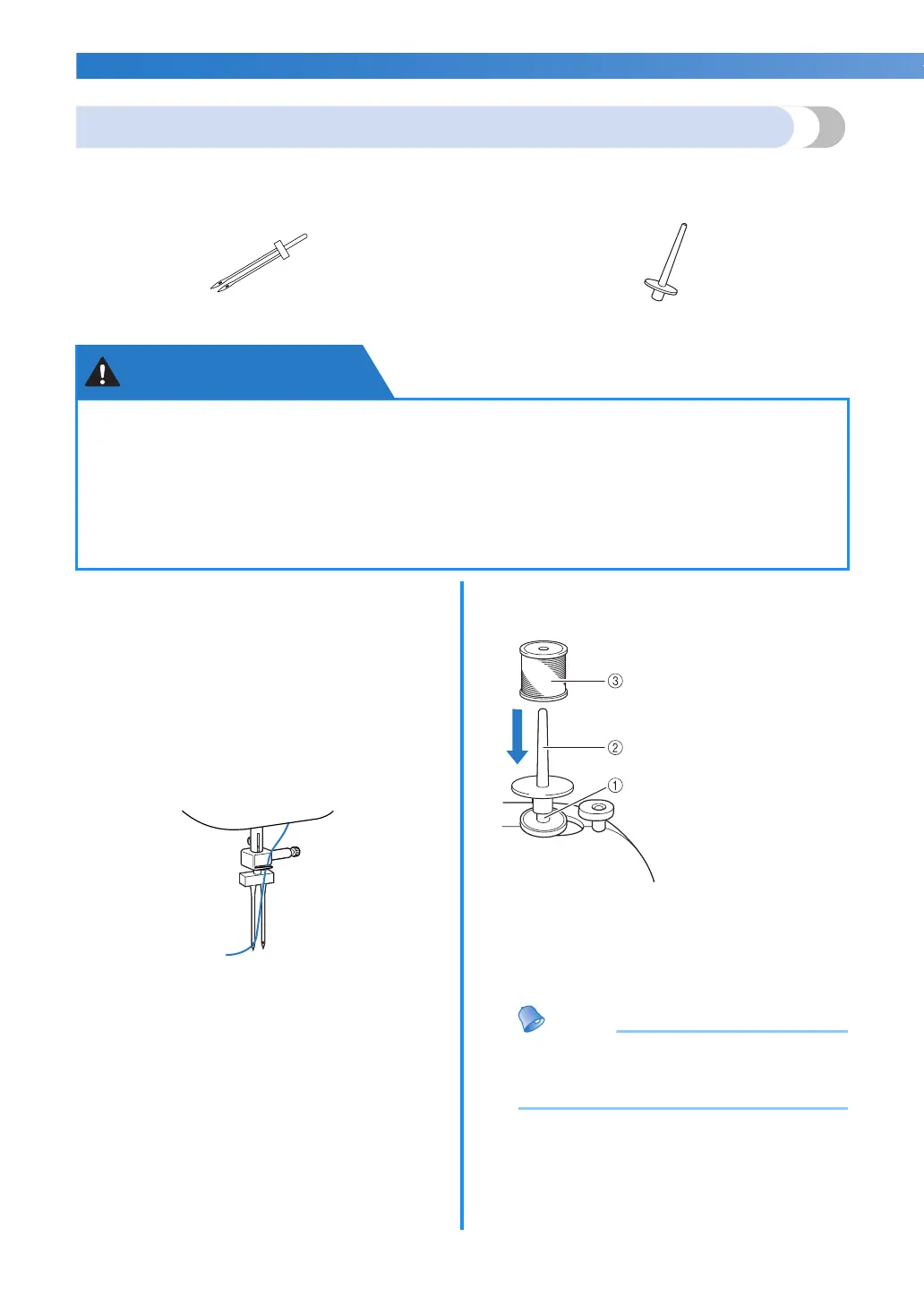Use only twin needles that have been made for this machine (part code: 131096-121). Other needles