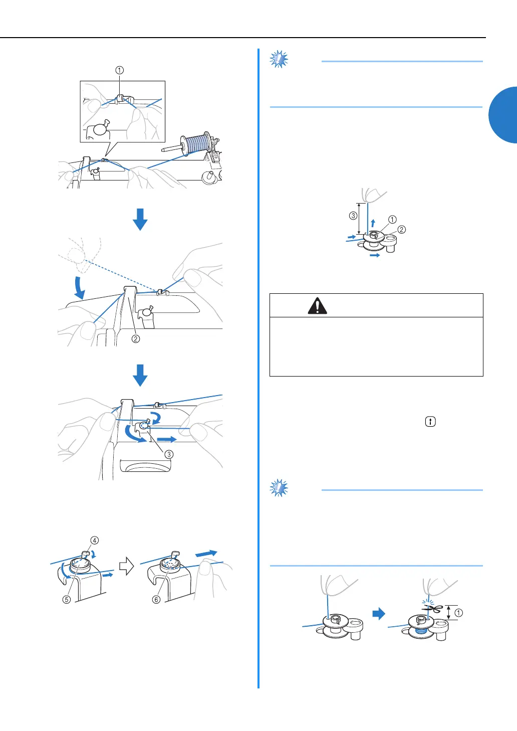 ● Make sure that the thread is pulled as far as