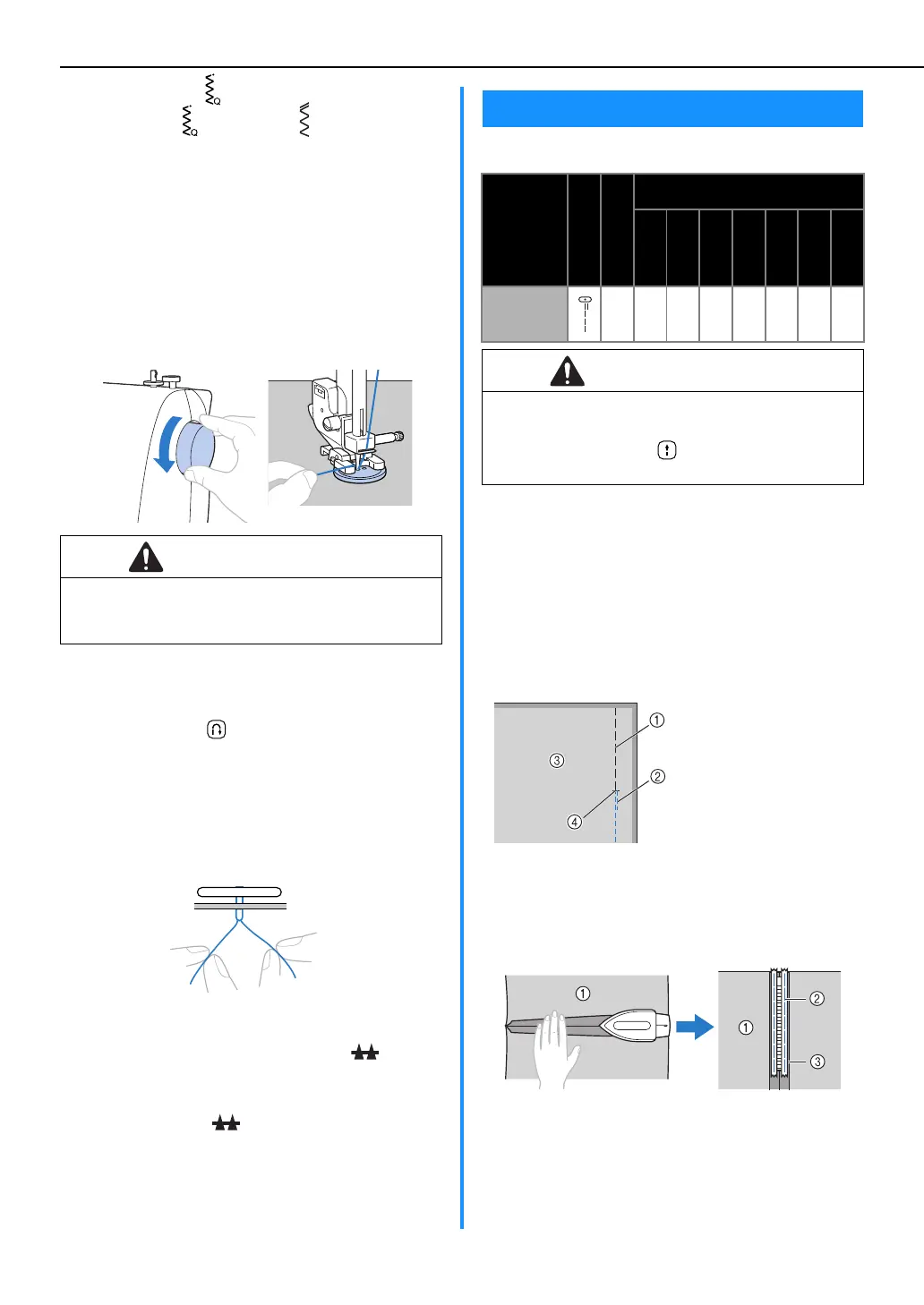 ● When sewing, be sure that the needle does not