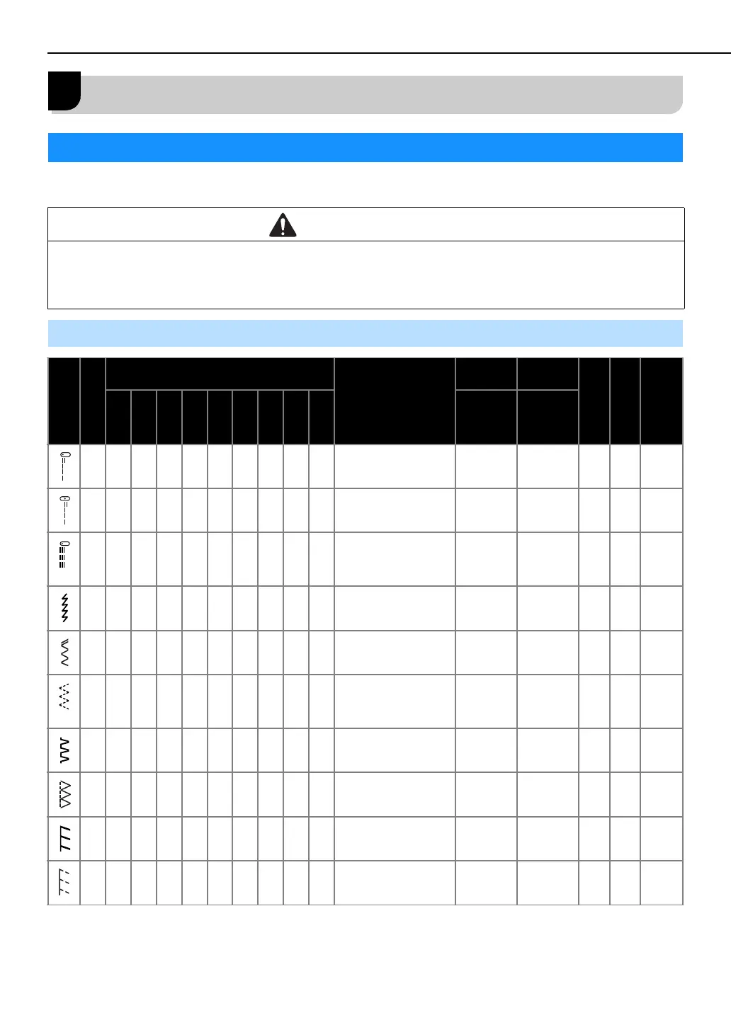 Applications, stitch lengths and widths and whether the twin needle can be used are listed for utility stitches in the