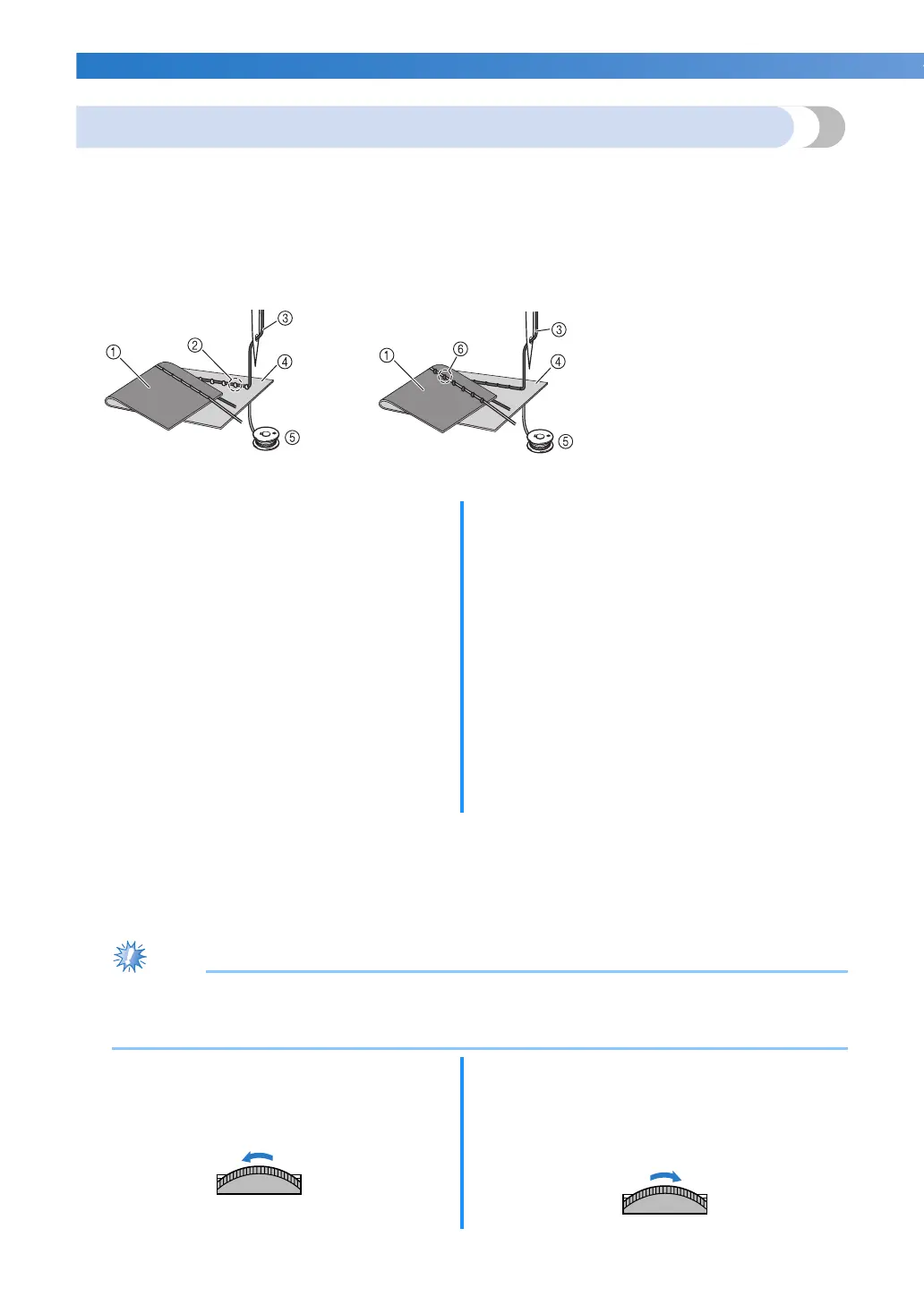 * Adjust the thread tension while test sewing on a piece of scrap fabric that is the same as that used in