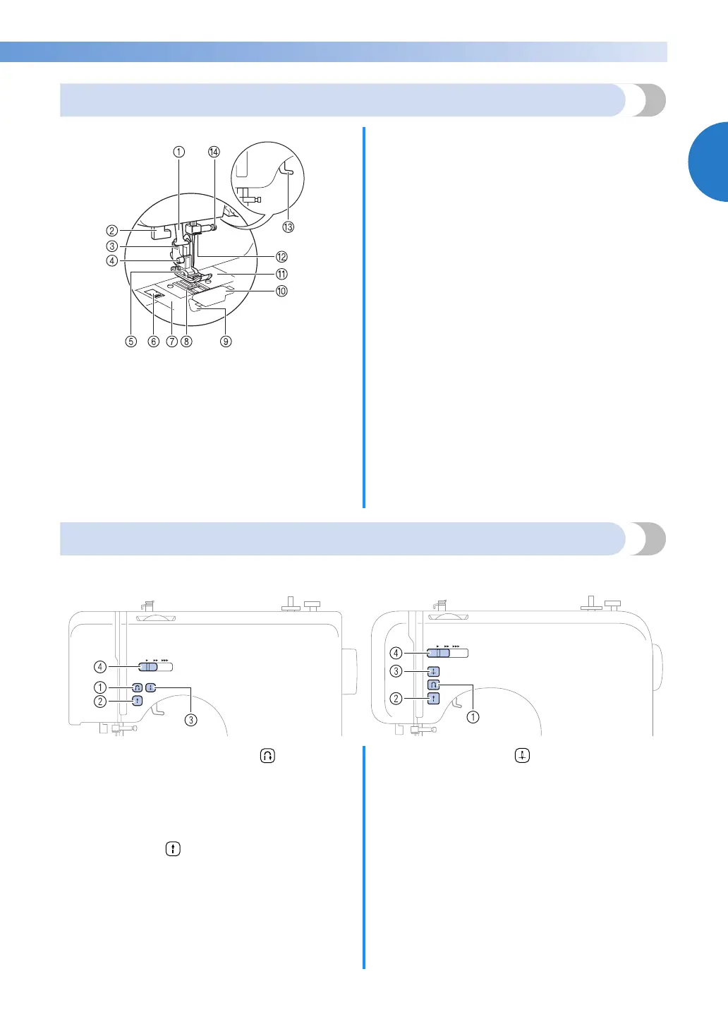 The operation buttons help you to easily perform various basic sewing machine operations.
