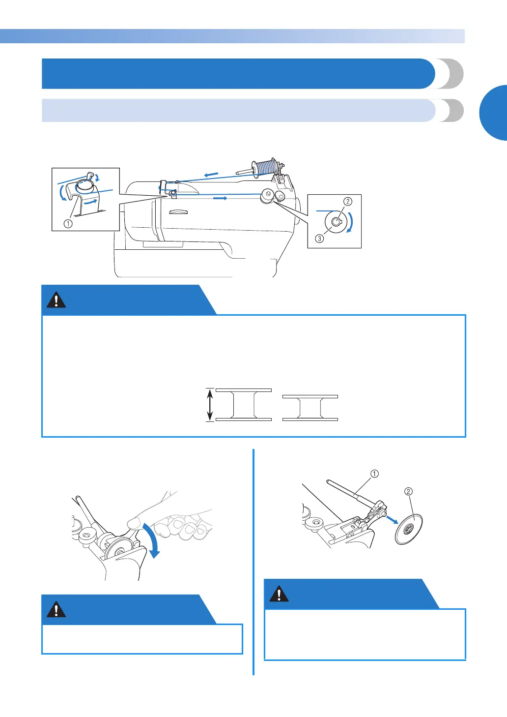 machine will not work properly. Only use the bobbin that comes with this machine or bobbins of the