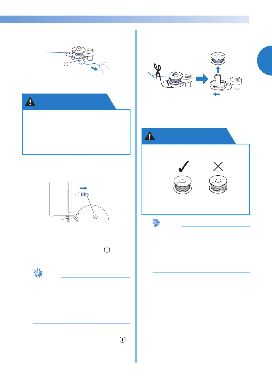 ● Not winding the bobbin properly may cause the