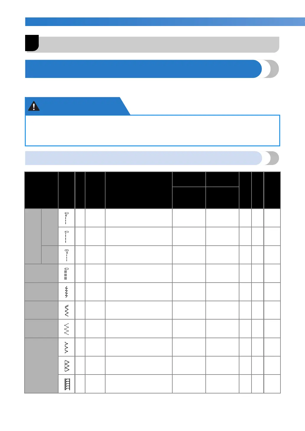 Applications, stitch lengths and widths and whether the twin needle can be used are listed for utility and satin