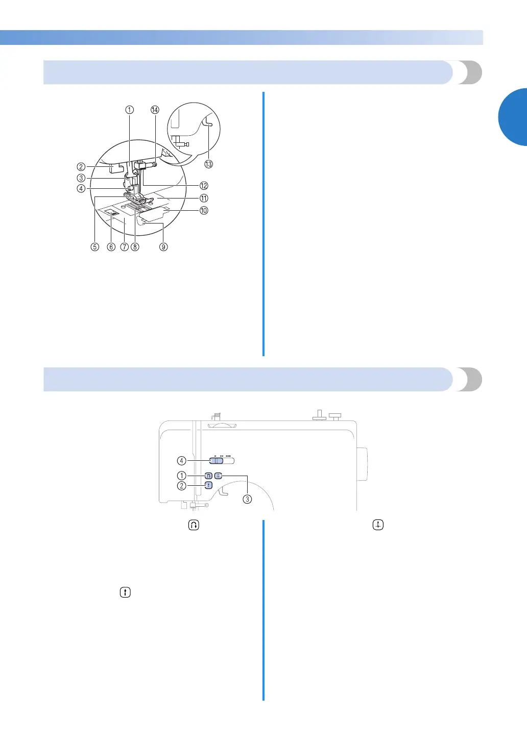The operation buttons help you to easily perform various basic sewing machine operations.