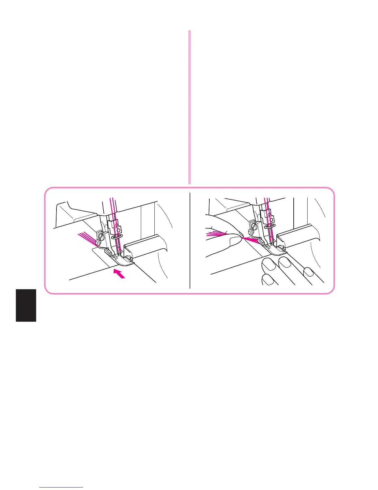 (2)Holding the needle threads with your left hand,