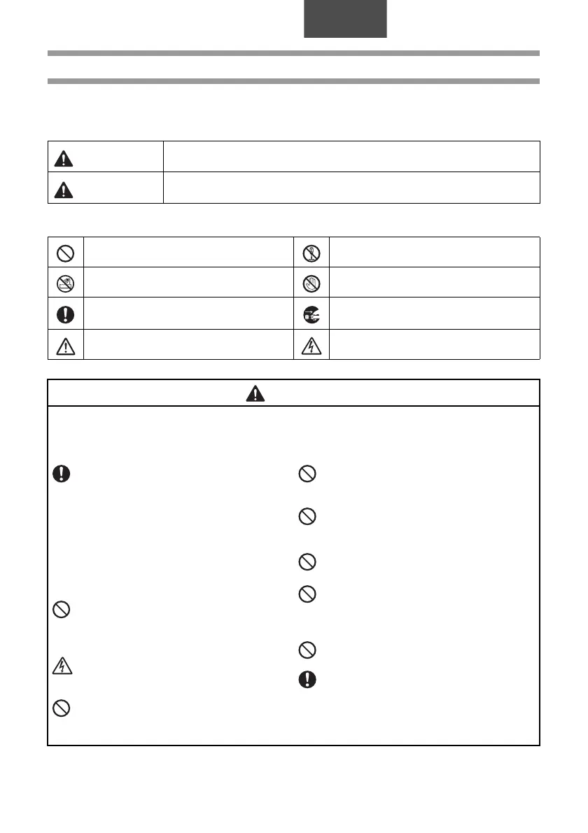 Để phòng ngừa thương tích và thiệt hại, những lưu ý quan trọng được giải thích bằng các biểu