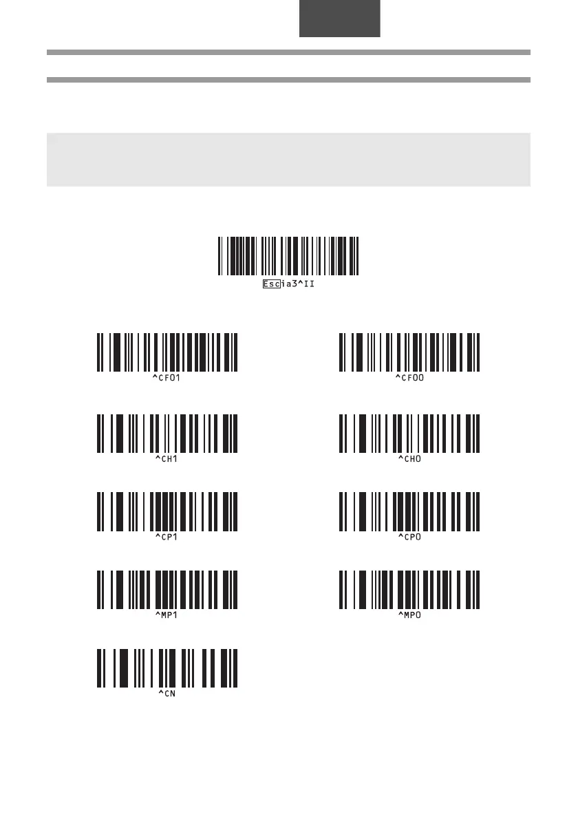 Sau đây là các mã vạch để chỉ định các cài đặt được dùng “Chức năng BTP (In tập tin mẫu mã