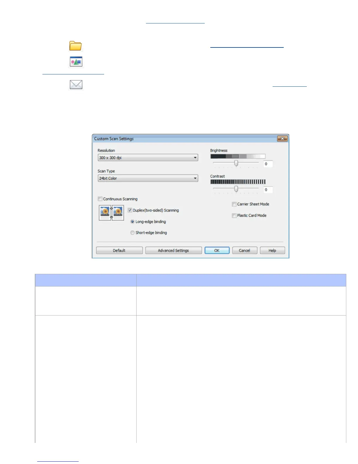 If you select Custom in the Document Type option, you can change advanced scan settings.