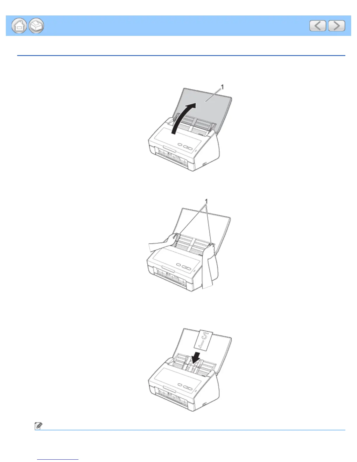 Place your document, face down and short side first in the document feeder between the Guides until you feel