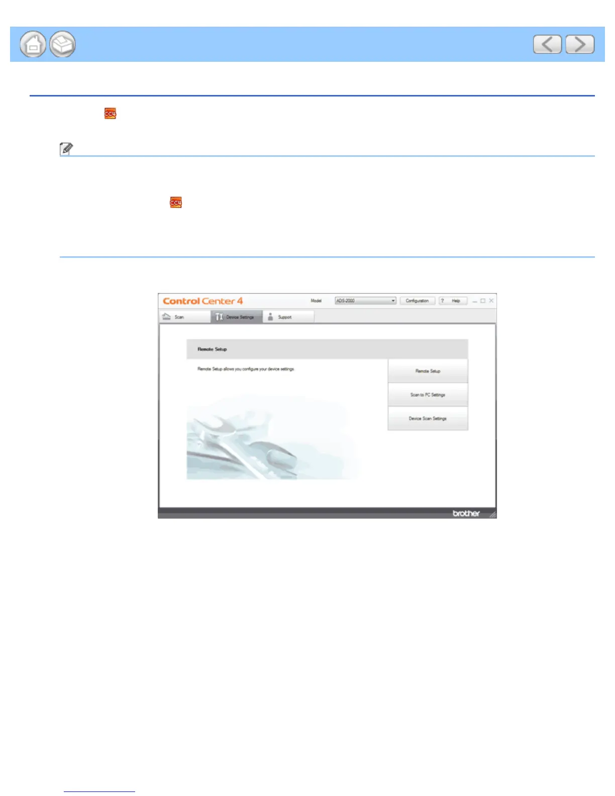• Click ControlCenter4 located in Start/All Programs/Brother/ADS-XXXX (where XXXX is your model
