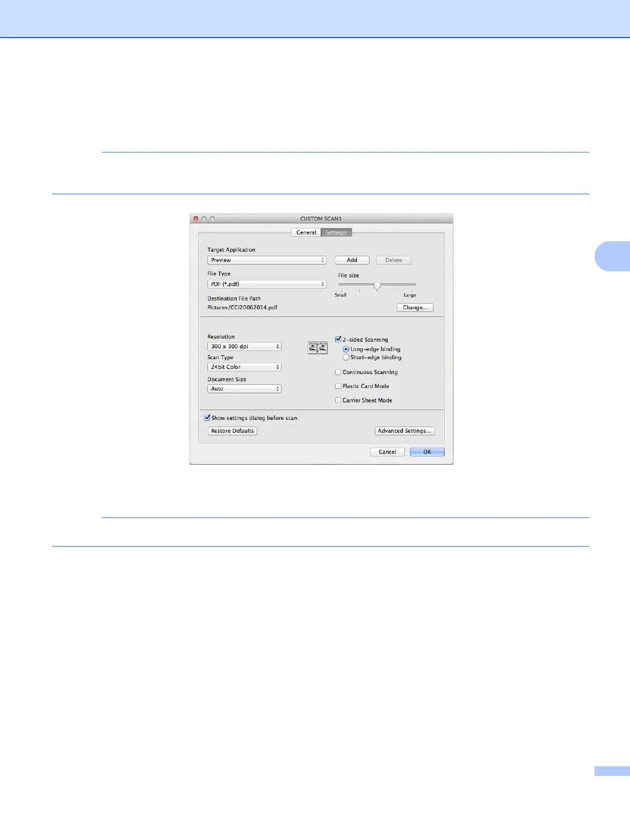 Choose the Target Application, File Type, Resolution, Scan Type, Document Size and 2-sided