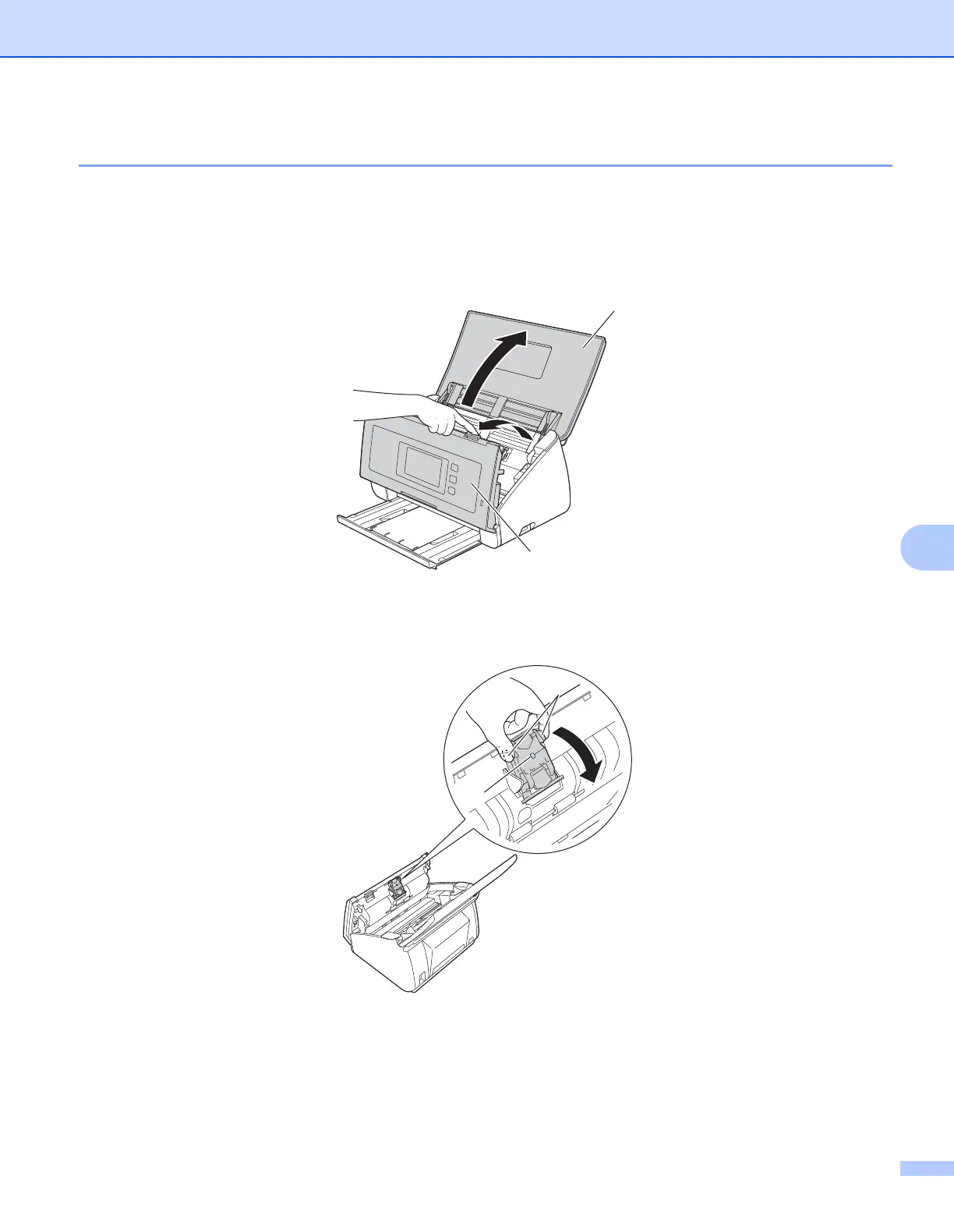 2 Press and hold the buttons a on the inside of the Front Cover and then pull the Separation Pad Cover s