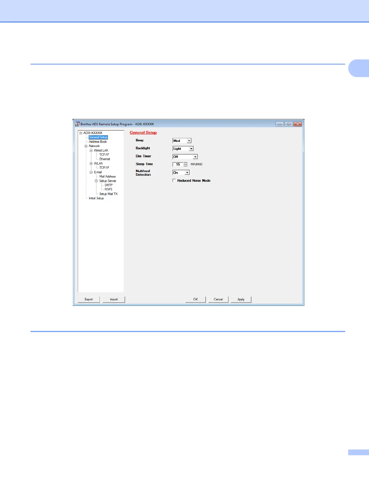 Select the Reduced Noise Mode check box in Remote Setup to reduce acoustic noise while scanning.