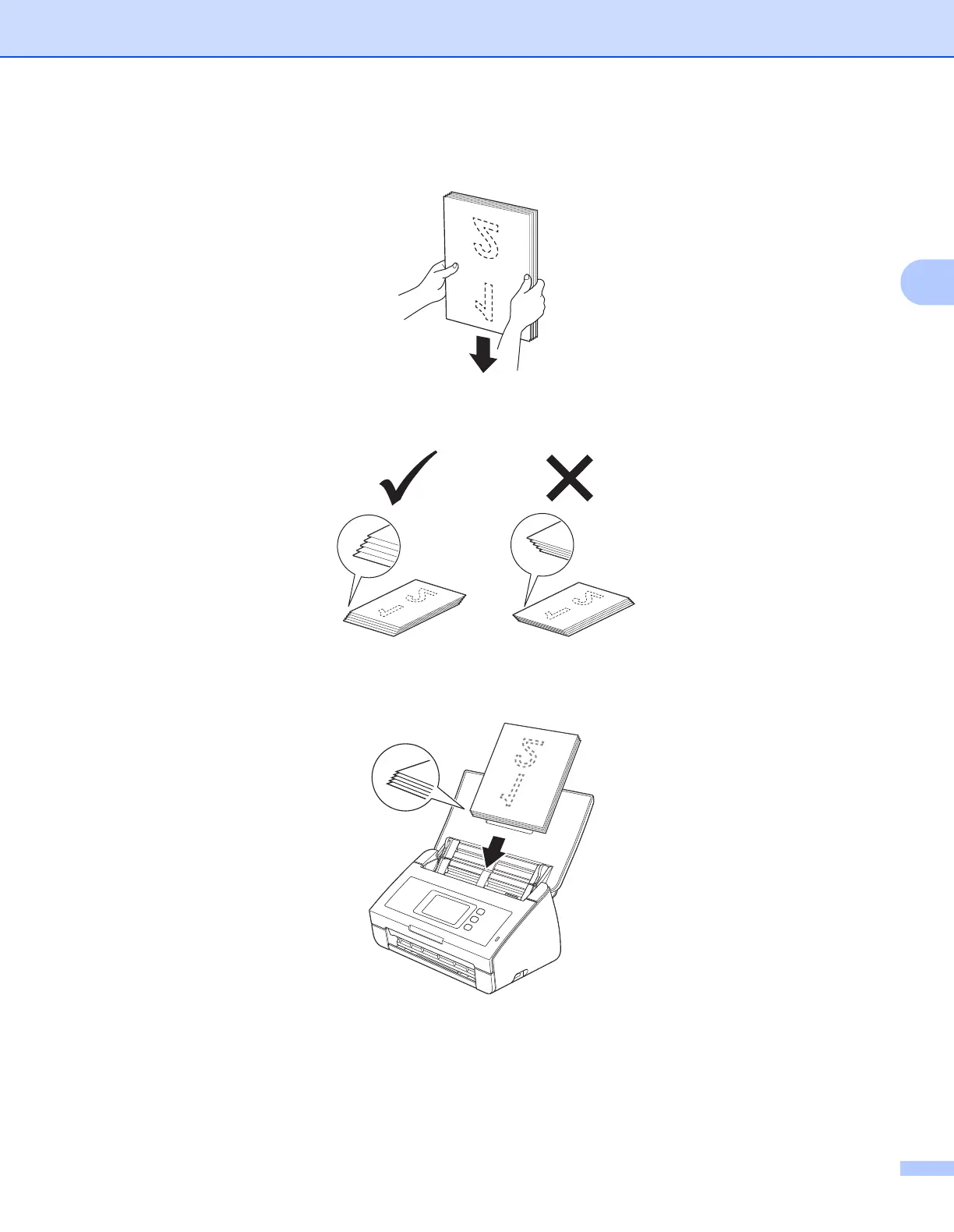 5 Place your document, face down, top edge first in the ADF between the Guides until you feel it touch