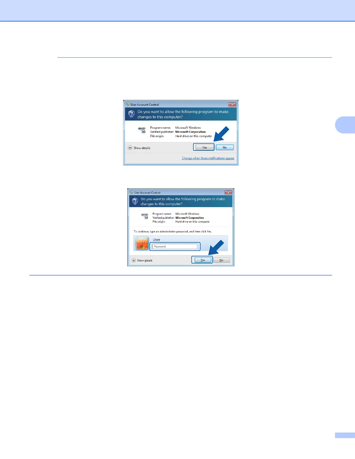 If the User Account Control screen appears, do the following: