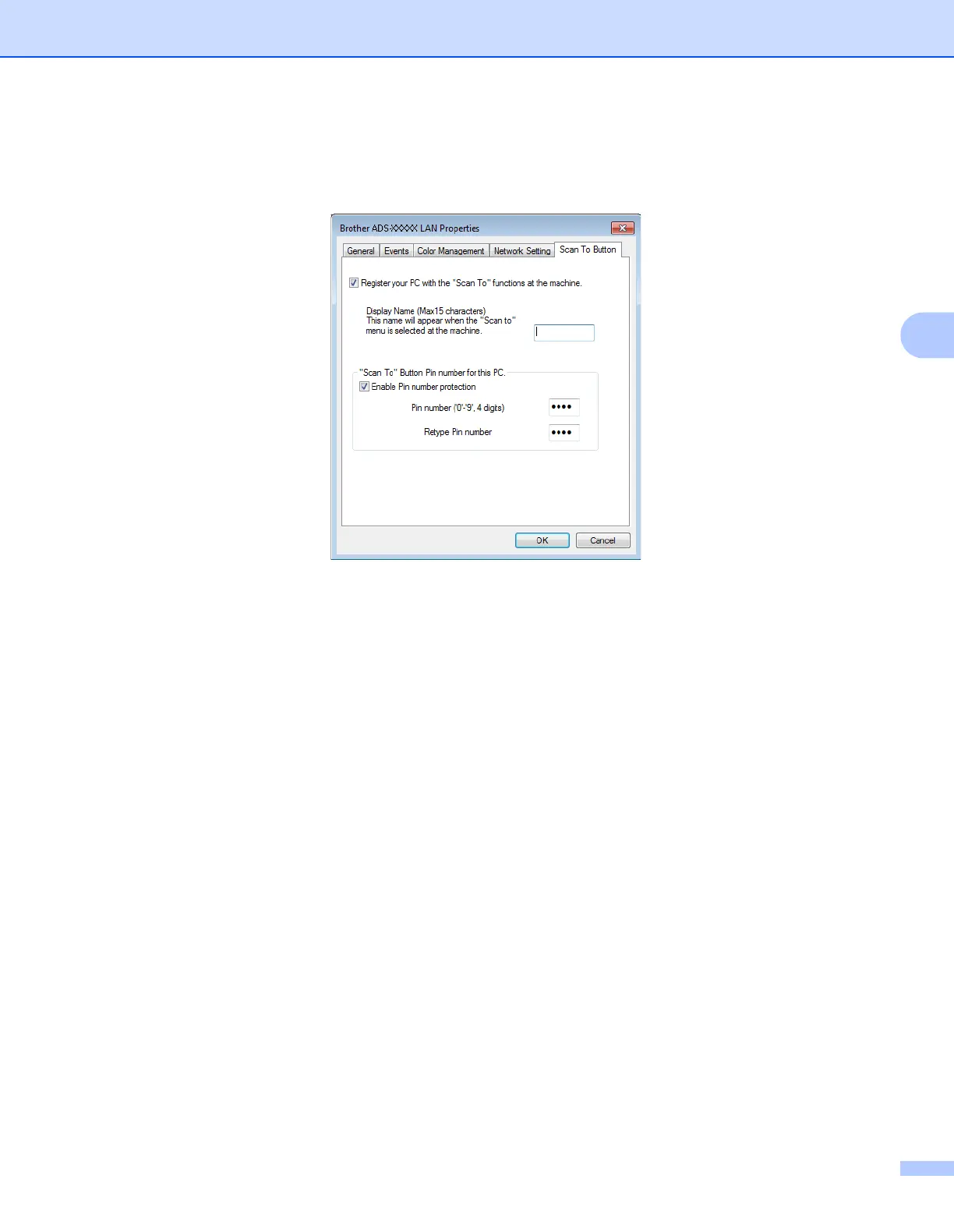 If you send scan data to a computer protected by a PIN, the machine’s LCD prompts you to enter the