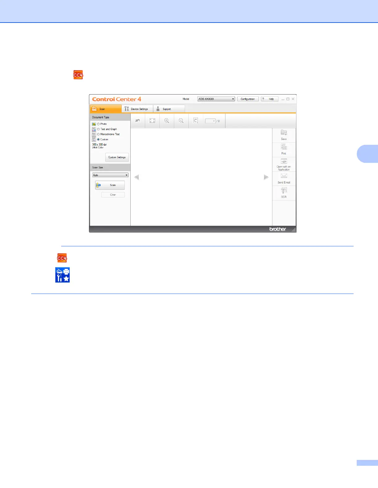 name (if not already selected). Click SCAN in the left navigation bar, and then click ControlCenter4.