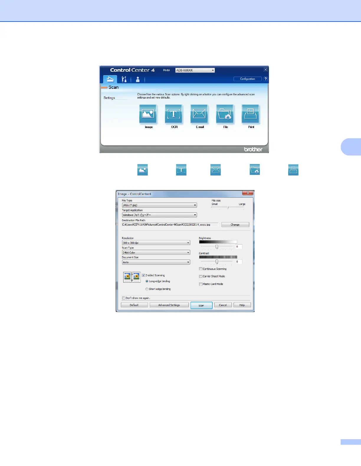 6 Change other settings if needed (see Change Scan Settings (ControlCenter4) (Windows
