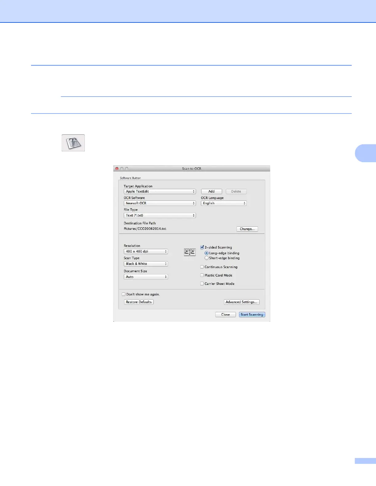 The Scan to OCR dialog box appears.
