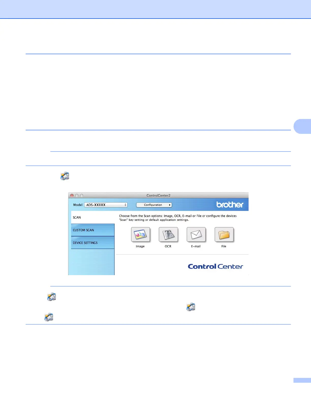 1 Hold down the Control key on your keyboard, and then click the ControlCenter2 scan button that you