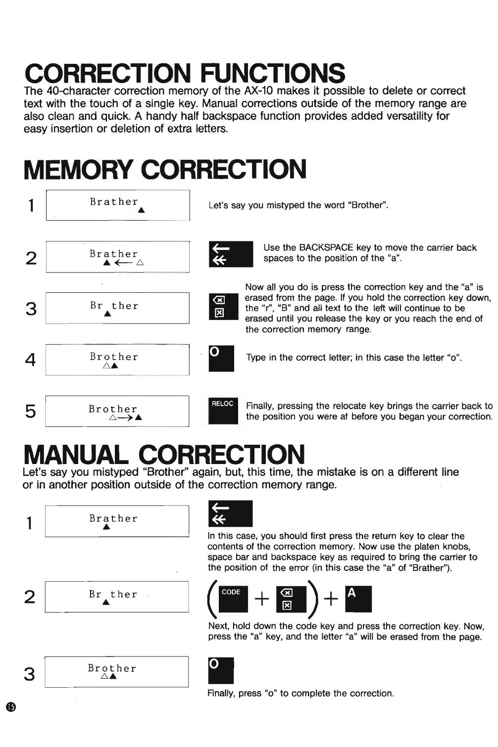 Brother AX-10 - Correction Functions; Memory Correction; Manual Correction