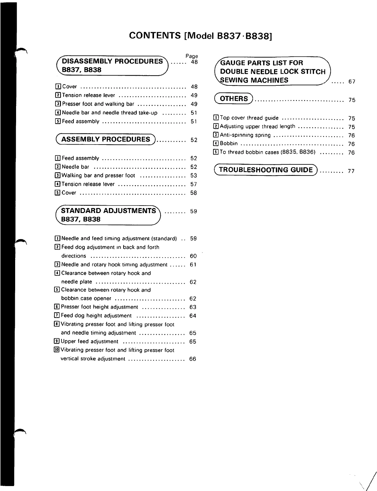 [I) Needle and feed timing adjustment (standard) . . 59