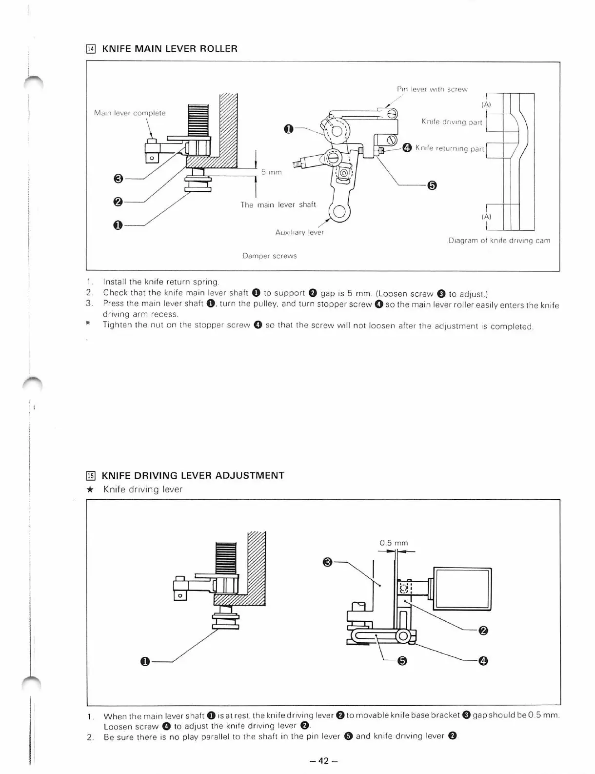 Brother b837 - Ffi) Knife Drcving Lever Adjustment; IE) Knife Mam Lever Roller