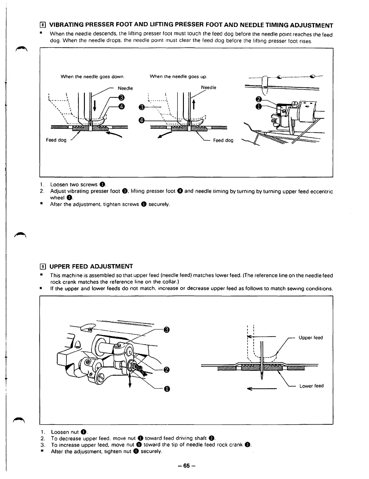 lifting presser foot 0 and needle timing by turning by turning upper feed eccentric
