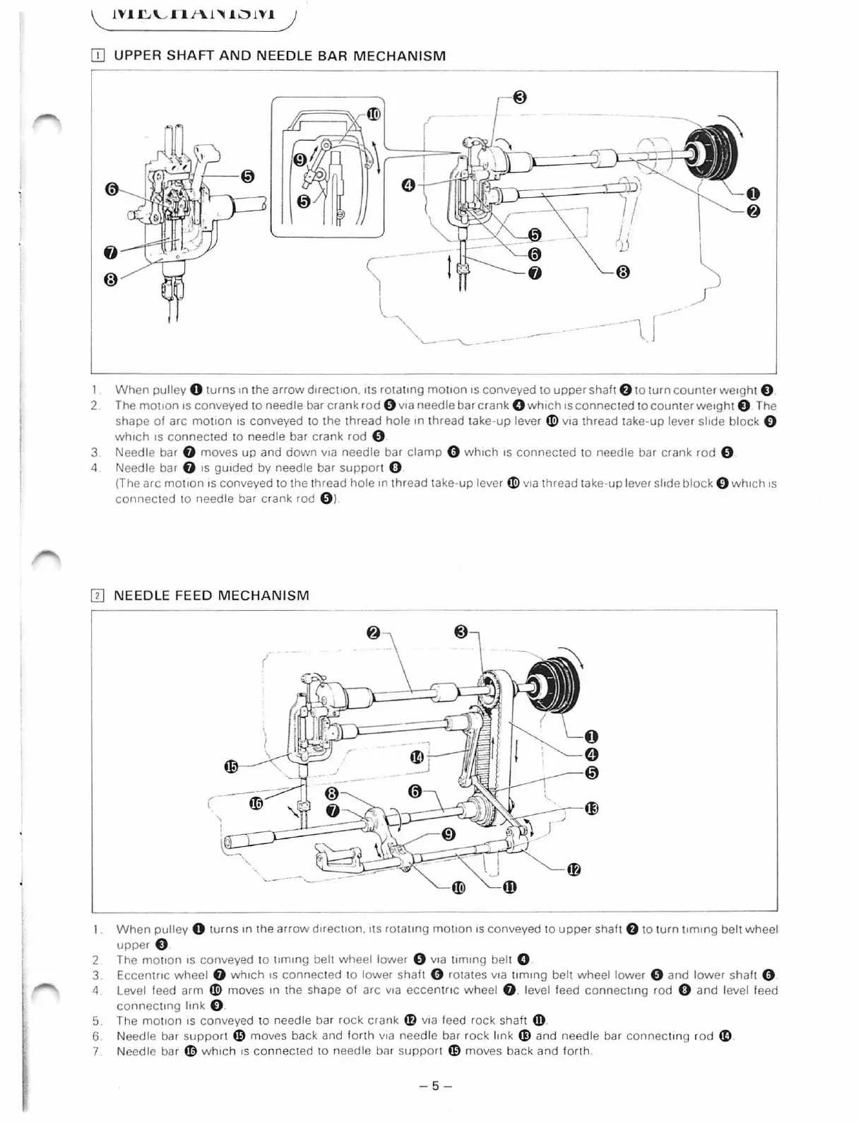Brother b837 - Sewing Machine Mechanism Overview; Upper Shaft and Needle Bar Mechanism; Needle Feed Mechanism